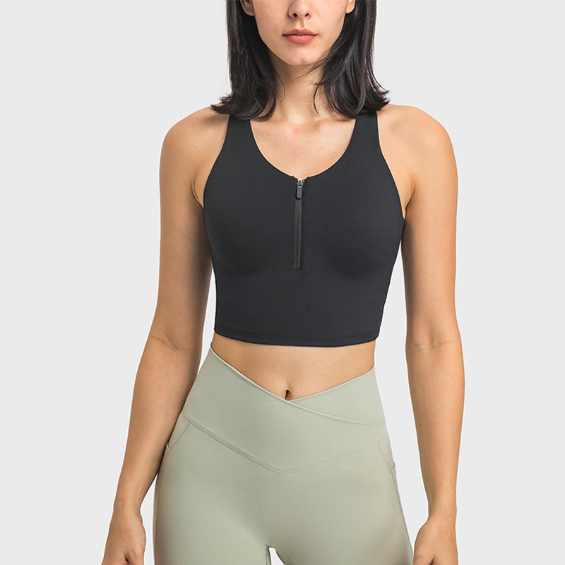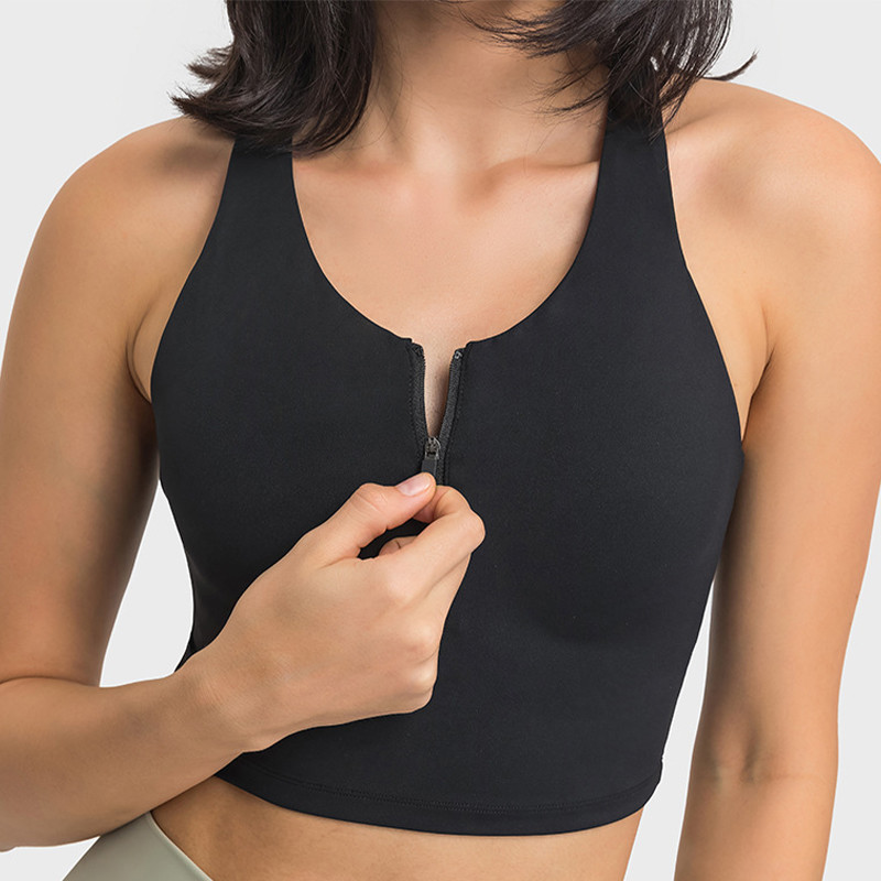 ফিক্সড প্যাড সহ নতুন ফ্রন্ট জিপ স্পোর্টস ব্রা হাই ইলাস্টিক ব্রেথেবল ট্যাঙ্ক টপ