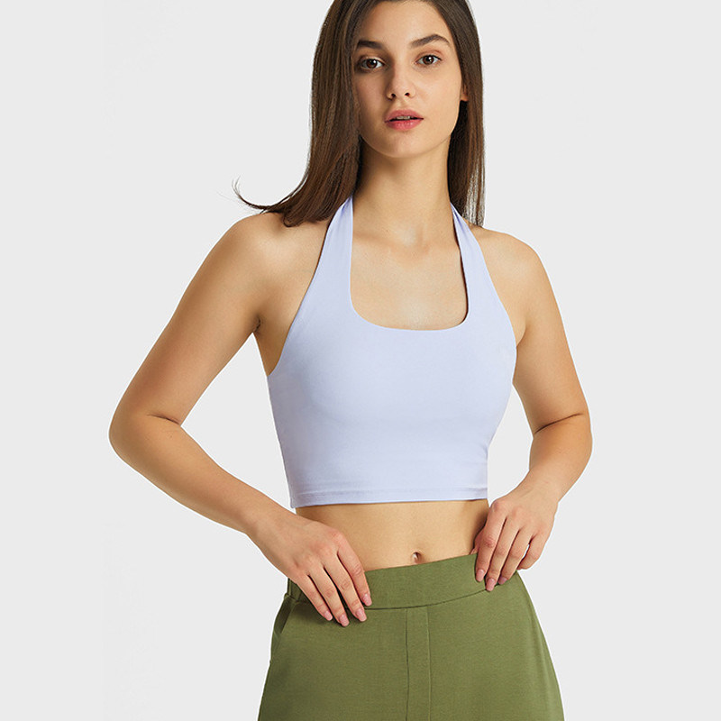 Halter Neck Women Sports Bra Sexy Pleated back Crop Tops with Removable Pad