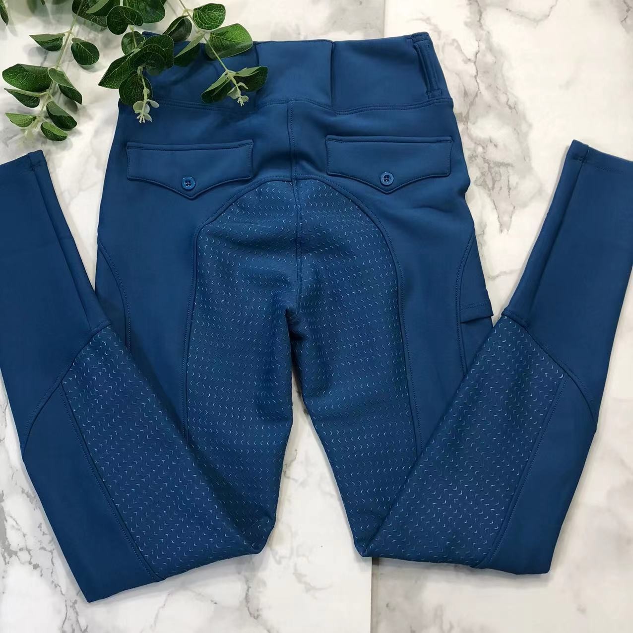 নীল শীতকালীন অশ্বারোহী বার্শেড ব্রীচেস ফুল সিট সিলিকন হর্স রাইডিং প্যান্ট পকেট সহ