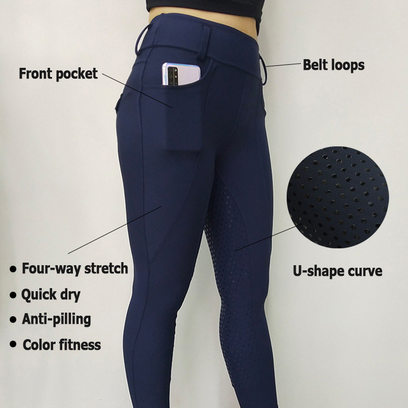 2 পকেট মহিলাদের 5 রঙের ঘোড়ায় রাইডিং লেগিংস সহ উচ্চ মানের অশ্বারোহী ব্রীচ